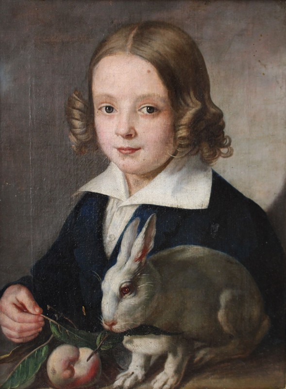 Chlapec ze zajícem - 19. stol. - Olej