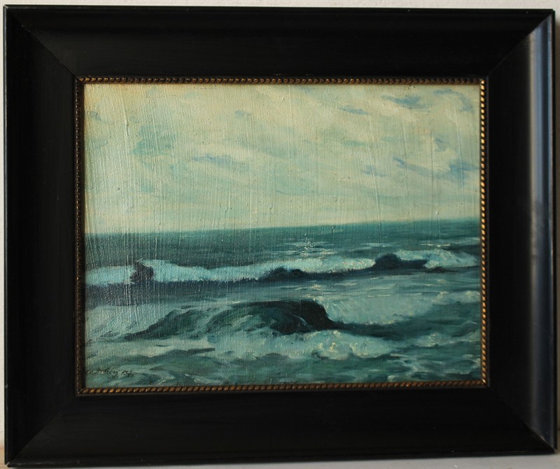 Dobri Ivanov Dobrev (1898 - 1973) Rozbouřené moře 1934 - Olej Signováno viz foto. Olej na kartonu. Rozměry malba: 32 x 42 cm.