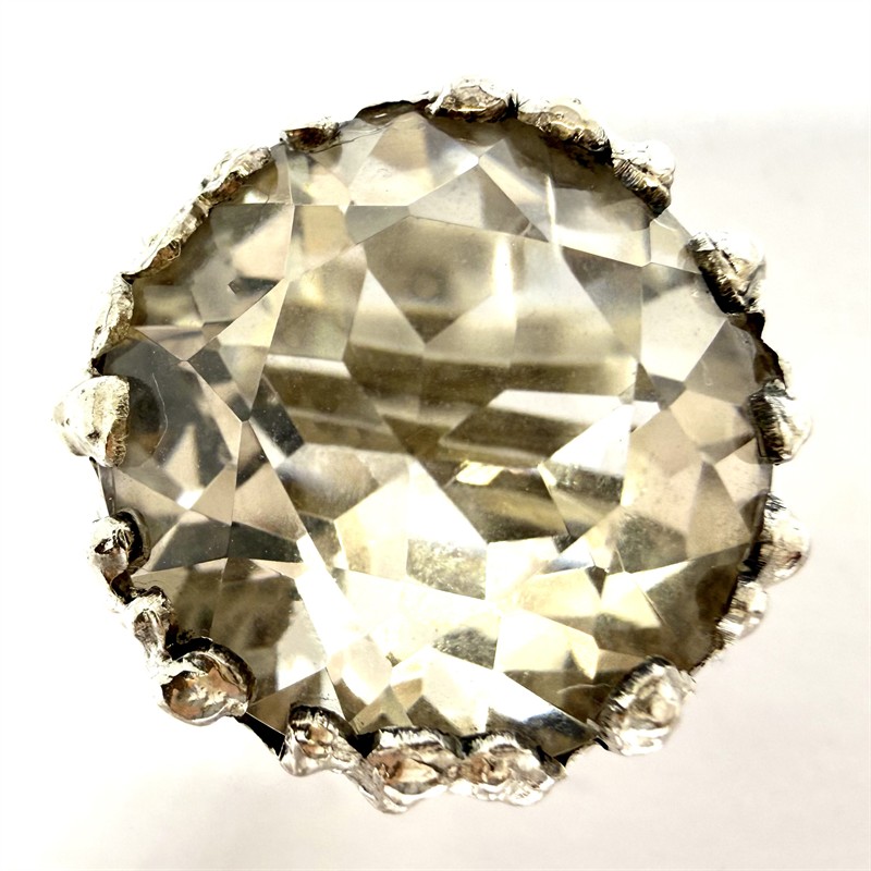 Originální, nepřehlédnutelný stříbrný prsten. Šperku dominuje velký horský křišťál zasazený do originální obruby. Stříbro ryzosti 830/1000, celková váha 14,46 g. Velikost 55. Perfektní stav.
