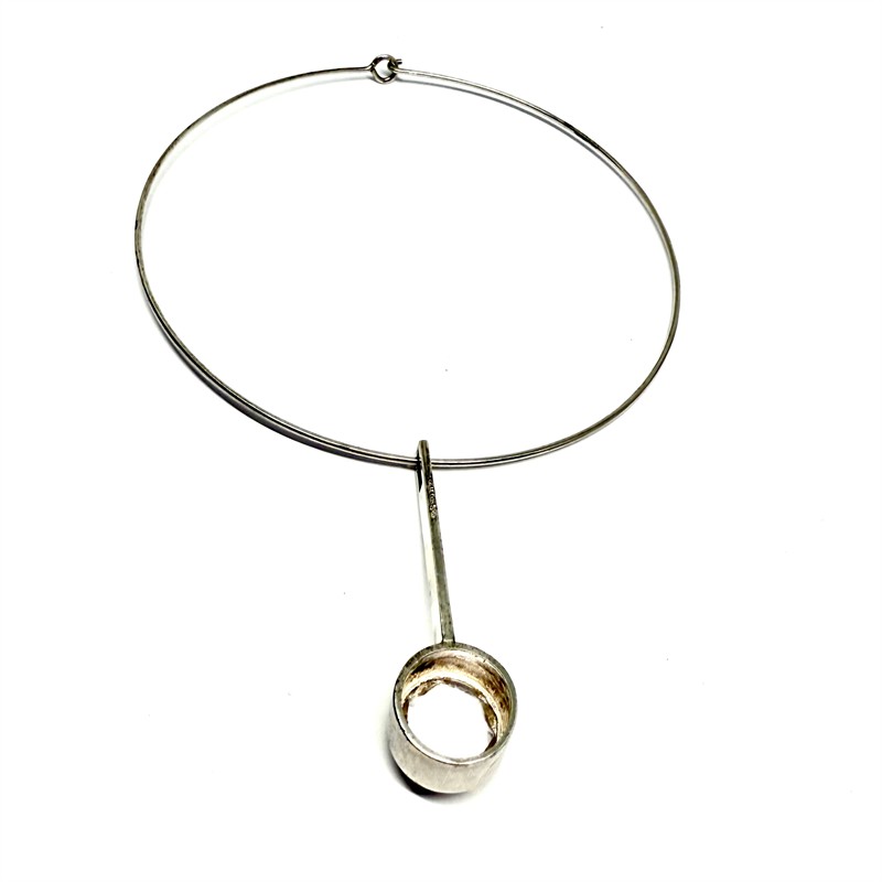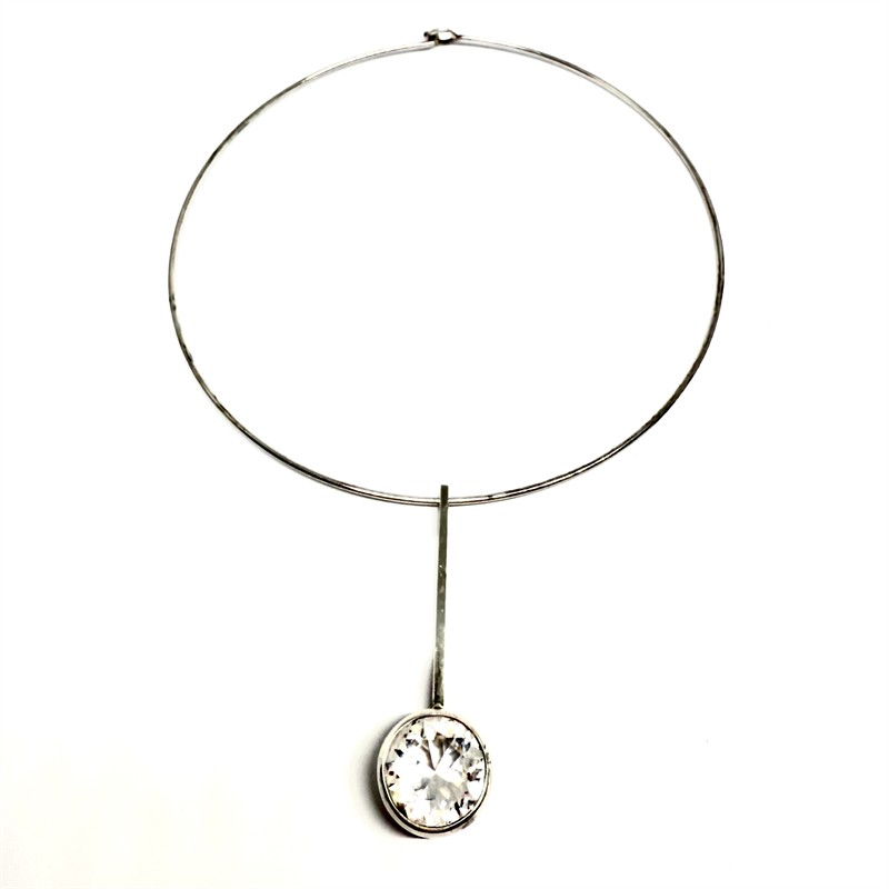 Minimalistický, designový náhrdelník s velkým horským křišťálem. Šperk byl zhotoven ze sterlingového stříbra (925/1000), o celkové váze 18,38 g. Značeno autorskou, ryzostní a puncovní značkou. Perfektní stav.