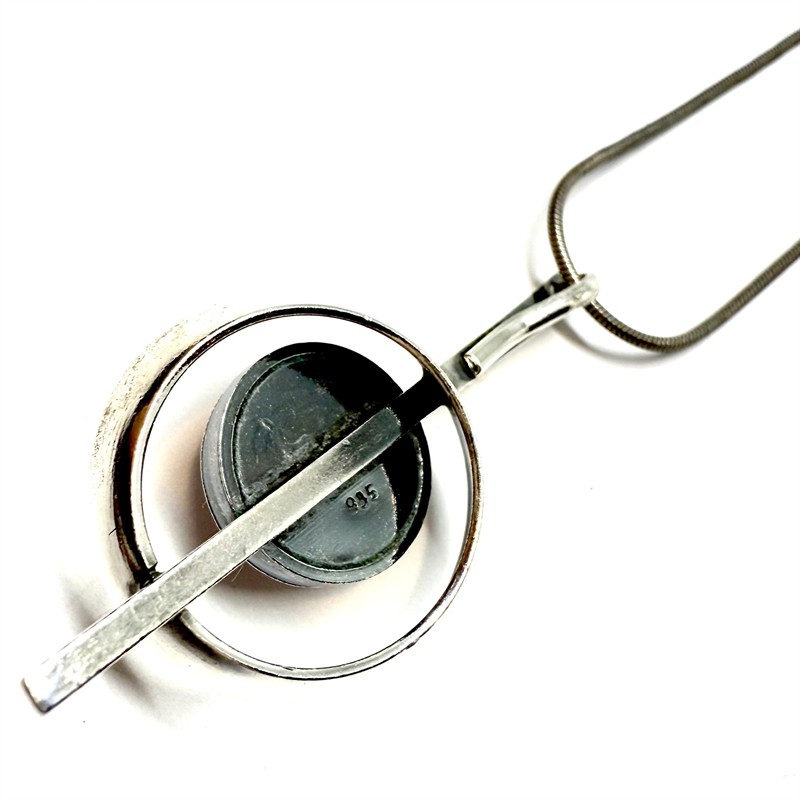 Nadčasový,desinově čistý,stříbrný náhrdelník s růženínem. Šperk byl zhotoven ze stříbra ryzsoti 935/1000,řetízek sterlingové stříbro (925/1000). Celková váha 12,88 g. Délka řetízku 45,5 cm. Rozměry závěsu 4,5 x 2 cm. Perfektní stav.