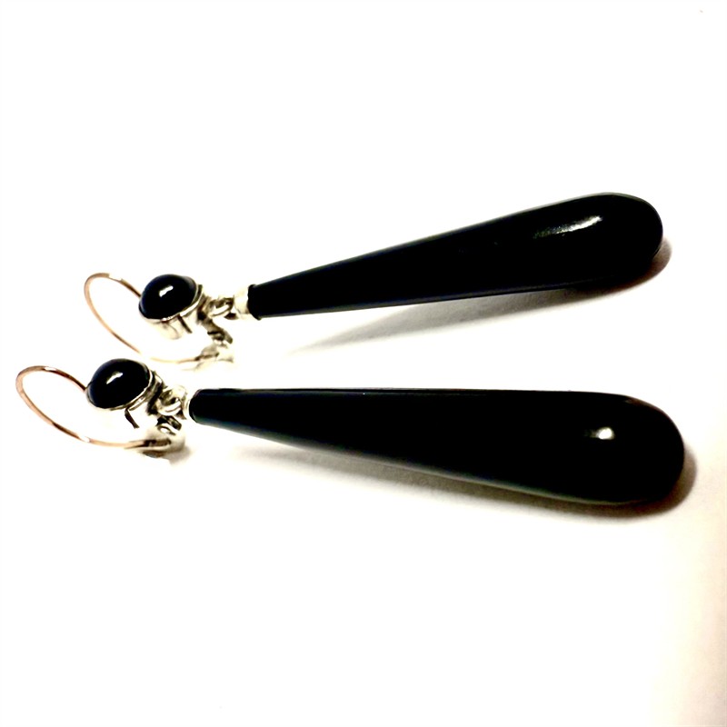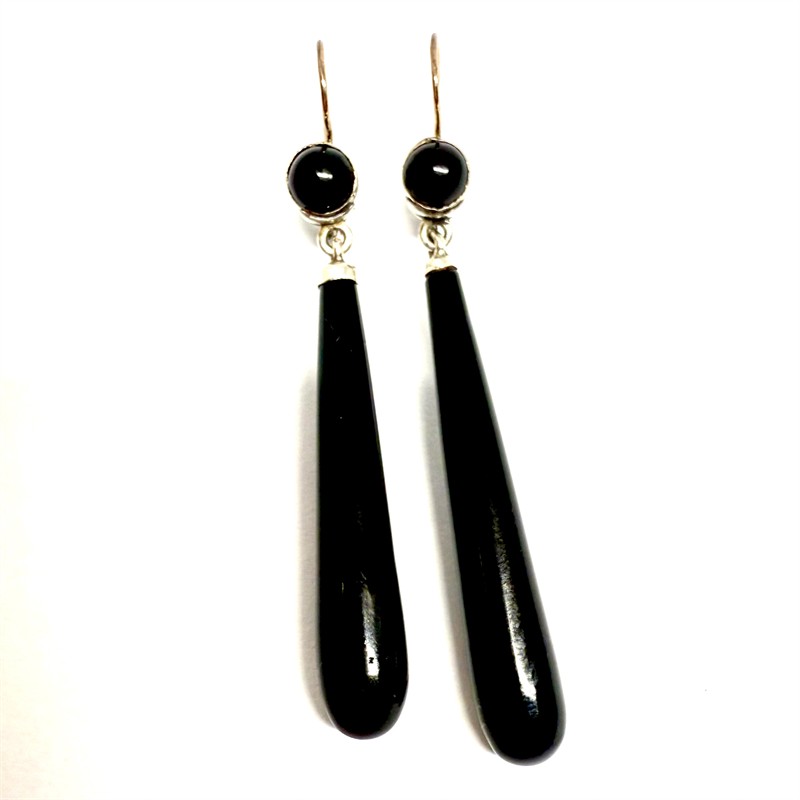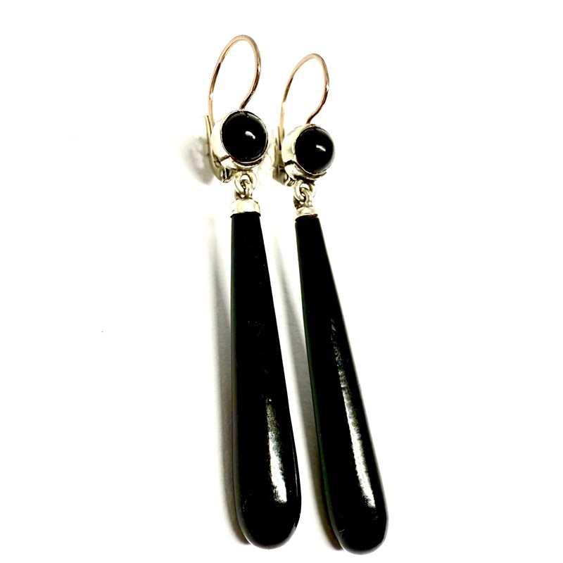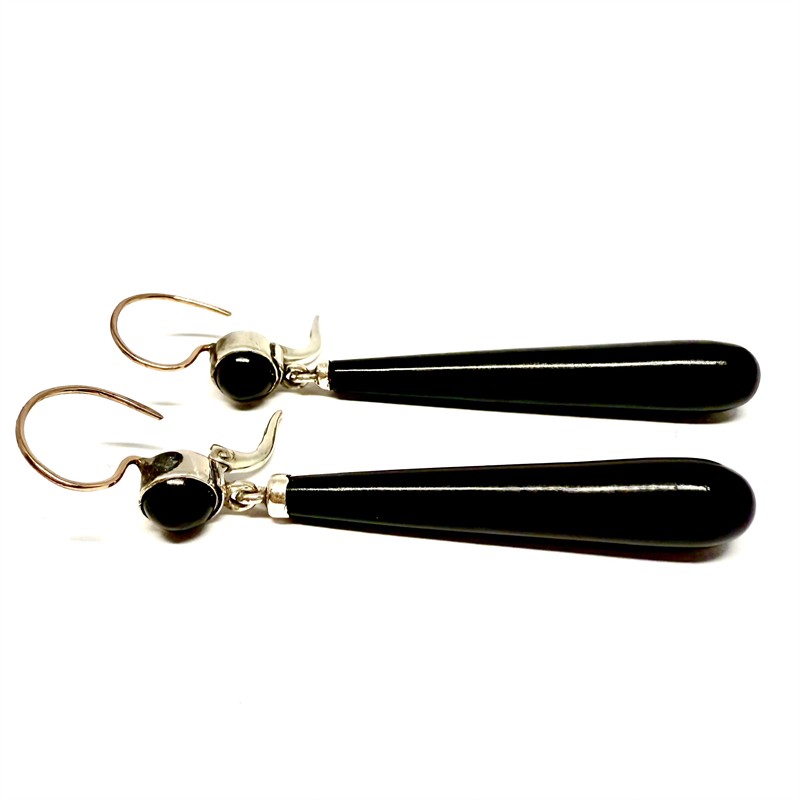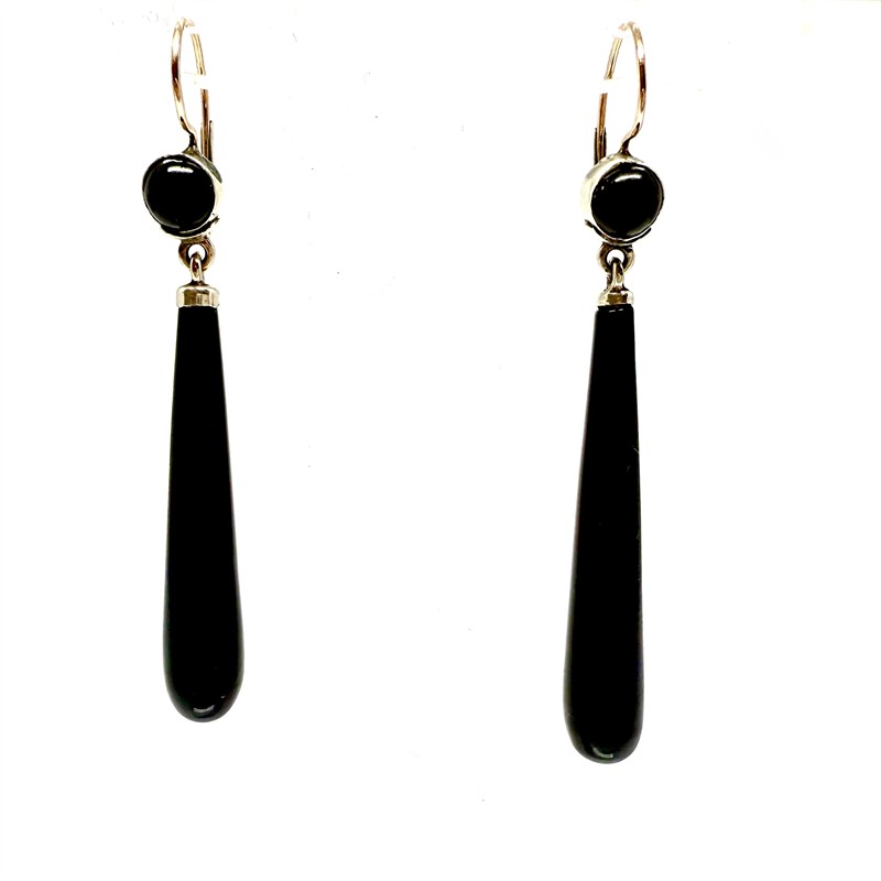 Dlouhé stříbrné prvorepublikové náušnice s onyxy
