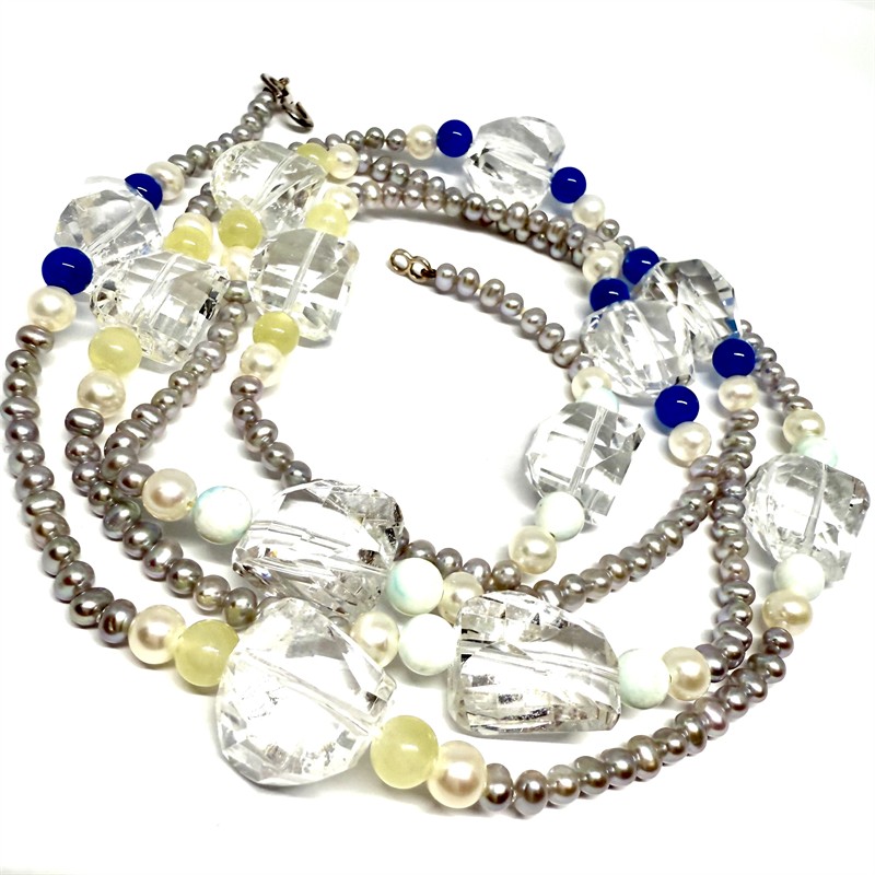č. 179 261 Dlouhý náhrdelník s horským křištálem a perlami