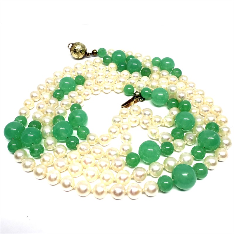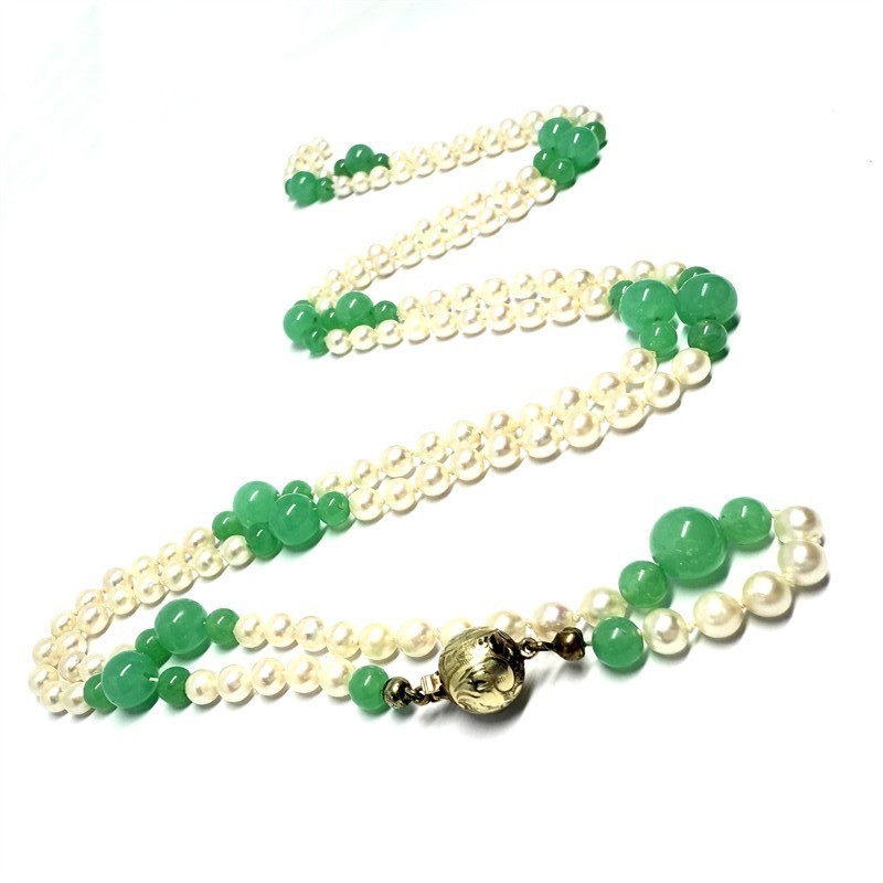 č. 181 331 Dlouhý perlový náhrdelník s chryzoprasy a zlatým zapínáním