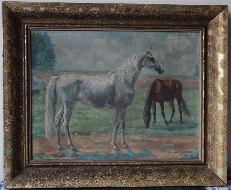 Emil Kotrba (1912 - 1983) - Koně na pastvě Signováno viz foto. Akademický malíř a grafik. Obraz je v perfektním stavu. Olej na plátně. Rozměry: 50 x 64 cm malba, 67 x 82 cm rám.