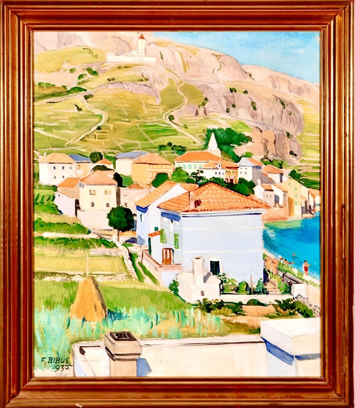 Krásný olej na plátně s motivem oblíbeného turistického cíle v Chorvatsku o velikosti 75 x 62 cm. Signováno a datováno vlevo dole “F. Bibus 1930”. Rámováno v původní adjustaci, odborně vyčistěno, obraz je výborném stavu. Felix Bibus (1899-1971) byl známý německy hovořící malíř z Čech a Moravy, člen Metznerbundu, vystavoval v Rudolfinu, zastoupen byl na výstavě “Mladí lvi v kleci”.