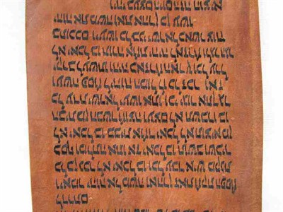 Fragment tóry z Egypta, starý přes 400 let Svitek tóry na jelenici obsahuje část knihy Exodus 12:27 – 13:2 (Pobití egyptských prvorozených a odchod Židů z Egypta). Jeho stáří je odhadováno na cca 450 až 500 let a původem je pravděpodobně z Egypta, odkud se dostal do Izraele. Má už věkem změněnou barvu na červenohnědou. Rozměry 55 x 12 cm. Prastaré pergamenové fragmenty tóry nejsou jen svědectvím dávných časů a vzácnými náboženskými předměty, ale také svébytnými výtvarnými díly. Písmo na nich je od nejlepších písařů a liší se jak podle doby, tak místa původu. Tyto byly vytvořeny v místech, kde žily silné židovské komunity, jako Jemen, Egypt, Persie, Maroko. Odtud se při stěhování Židů do Izraele stěhovaly i svitky, později pak také do Spojených států.