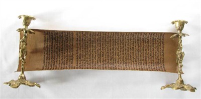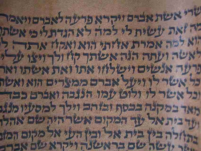 Svitek tóry na pergamenu z kozí kůže obsahuje část knihy Genesis 12:18 - 14:7, odchod Abraháma s Egypta a putování s Lotem. Jeho stáří je odhadováno na 250 až 300 let a původem je z Persie. Rozměry 40 x 13 cm. Prastaré pergamenové fragmenty tóry nejsou jen svědectvím dávných časů a vzácnými náboženskými předměty, ale také svébytnými výtvarnými díly. Písmo na nich je od nejlepších písařů a liší se jak podle doby, tak místa původu. Tyto byly vytvořeny v místech, kde žily silné židovské komunity, jako Jemen, Egypt, Persie, Maroko. Odtud se při stěhování Židů do Izraele stěhovaly i svitky, později pak také do Spojených států. Svícny na prvním obrázku nejsou součástí prodeje - jen drží svitek rozložený.