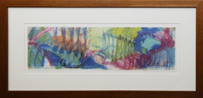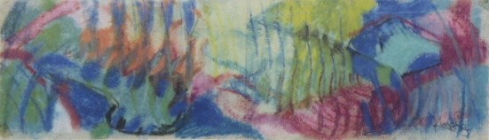Barevný litoofset na papíru 12 cm x 42 cm. Značeno vpravo dole v tisku. František Kupka (1871-1957). Pozvánka na výstavu Františka Kupky Pastels et Gouaches 1906 - 1945 konané ve dnech 26. května až 30. června 1964 v pařížské galerii Karl Flinker. Vytiskl Henry Deschamps. Ve zlatavém patinovaném rámu s paspartou a sklem. Francie, Paříž, rok 1964. Celkový rozměr s rámem 27,5 cm x 57,5 cm.