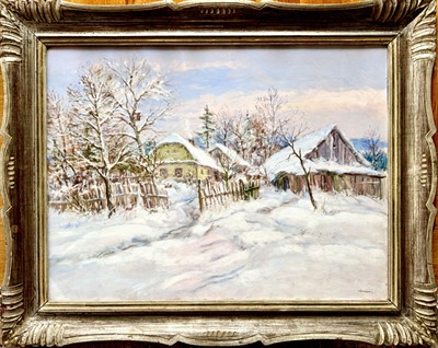 Krásný olej na lepence o velikosti 50 x 66 cm. Signováno vpravo dole. Rámováno pod sklem. Obraz je v bezvadném stavu. František Škrabánek (1901-1974) byl oblíbený český malíř krajin, především Vysočiny, je považován za následovníka Františka Kavána, žák Aloise Kalvody a Ferd. Engelmüllera, člen Spolku Marold.