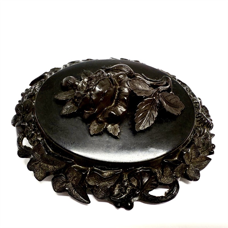 č. 179 185 Gagátová brož s plastickým motivem růže