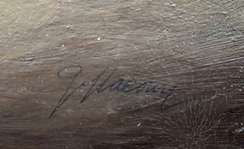 Kouzelný obraz Gustava Macouna. Olej na kartonu 57x53 cm, 68x64 cm včetně rámu.