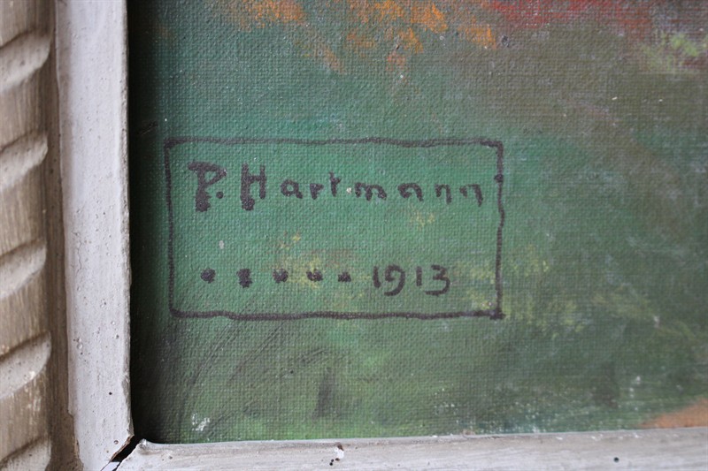 Hartmann,Lodka na recce,Olej na platne,Signovano a datovano 1913 (viz foto) Rozmery malba:50 x 60 cm.
