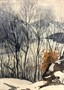 Zimní krajina, akvarel, rozměr s rámem 36 x 45 cm, samotná malba 20 x 29 cm. Signováno vpravo dole. Paspartováno, zaskleno.