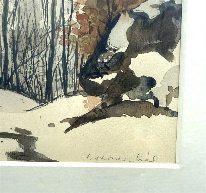 Imro Weiner Kráľ, Zimní krajina, akvarel