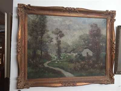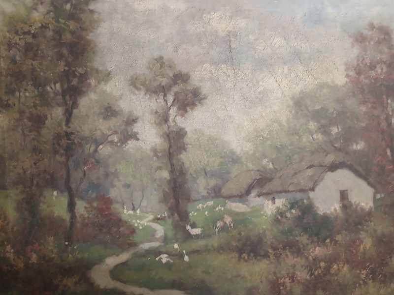 J. Szabo olej na plátně krajina s chalupou