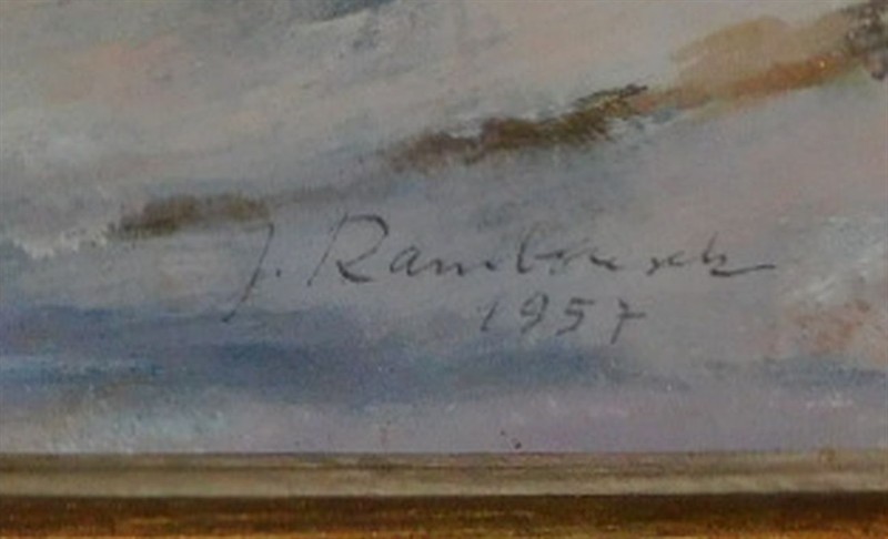 Jan Rambousek - Motiv ze Spořilova Olej na lepence, 35 x 45 cm, s rámem 45 x 60 cm, signováno vpravo dole J. Rambousek 1957. Na zadní straně autorsky podpis, název a datace. Rám místy drobně poškozen, jinak velmi dobrý stav. Autor byl učitelem na Akademii, asistentem Maxe Švabinského, autorem mnoha knih a článků, jeho specializací byla grafika se sociální tématikou. Olejomalby jsou spíše vzácné.
