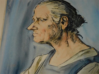 JAN RAMBOUSEK - PORTRÉT STARÉ ŽENY, akvarel