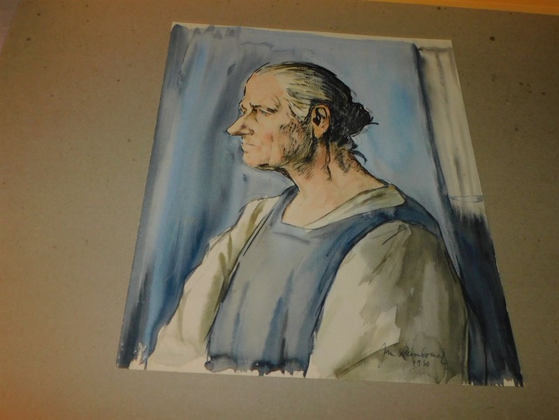Jan Rambousek (1895 -1976) – Portrét staré ženy. Kresba tuší, akvarel, papír, pracovní pasparta, signováno vpravo dole Jan Rambousek 1930. Rozměr 36 x 30 cm, nerámováno. Autor byl učitelem na Akademii, asistentem Maxe Švabinského, autorem mnoha knih a článků, jeho specializací byla grafika se sociální tématikou.