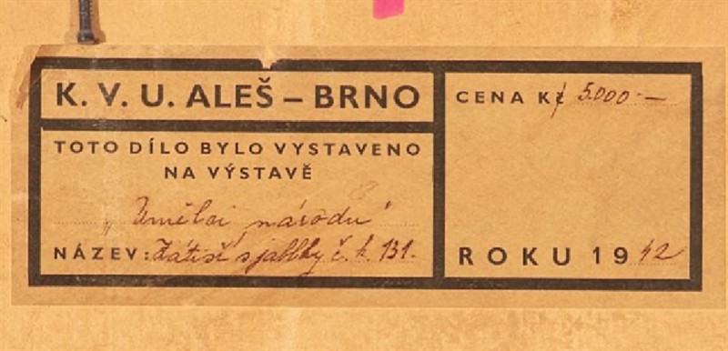 Vystavovaná velká kombinovaná technika na kartonu o velikosti čisté malby 36 x 60 cm. Rámováno v paspartě pod sklem. Na rubu výstavní štítek KVU Aleš k výstavě “Umělci národu” z roku 1942 s popisem díla. Jan Sládek (1906-1982) byl významný český malíř původem z Ostravy, byl řádným členem Spolku Mánes v Praze, SVUM v Ostravě. Zastoupen je sbírkách GVU v Ostravě, Národním muzeu a j.