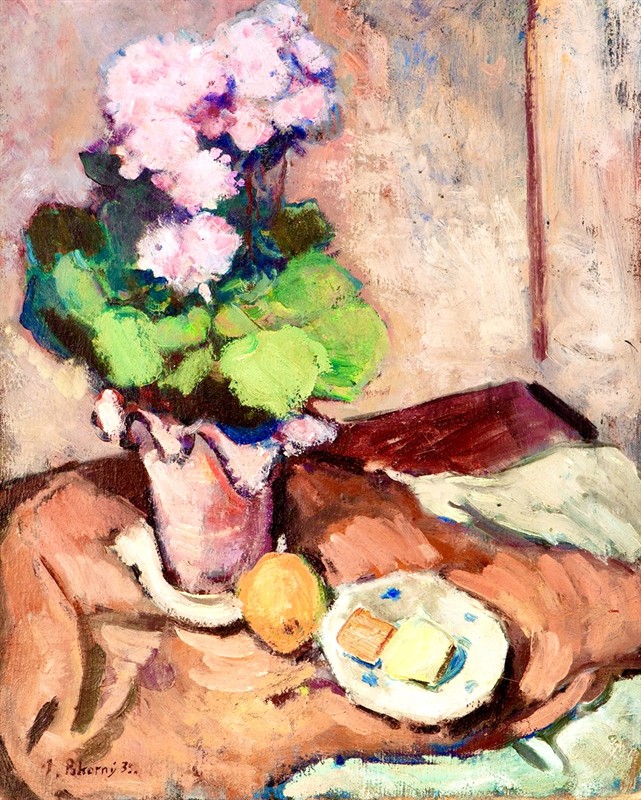 Jaroslav Pokorný : Zátiší s ovocem a kyticí (1935)