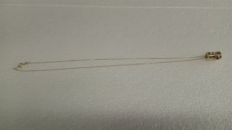 Ježek v kleci, přívěsek, zlato ryzosti 585/1000. Délka přívěsku je 2 cm . Hmotnost přívěsu je 4,23 gr. Délka řetízku 45 cm. Celková hmotnost je 5,40 gr. Nenošený šperk . Přiložena boleta Puncovního úřadu.