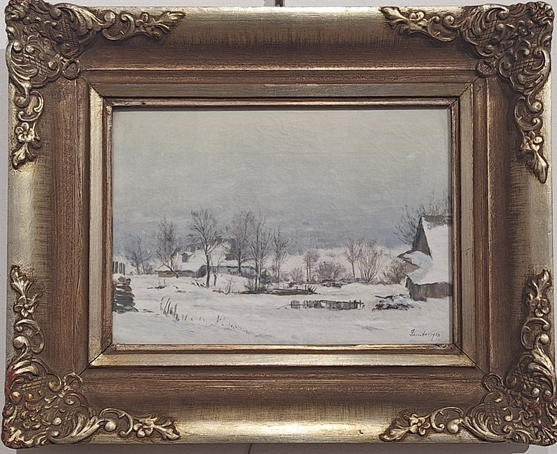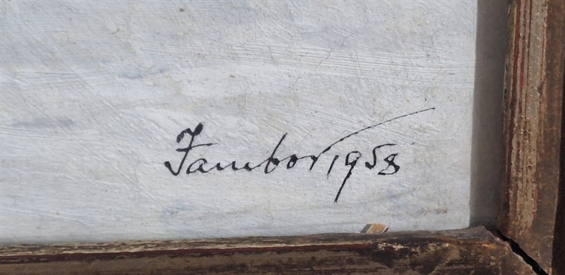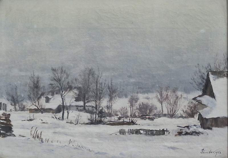 Olej na.plátně 25x35 cm. Motiv z Blatin. Původní stav. Rok 1958.