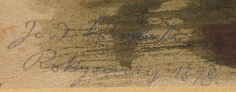 Akvarel, tuš a tužka na papíru 17,5 cm x 25 cm. Signováno vlevo dole s určením místa Rokycany s datací 1898. Autor: Josef Jindřich Loukota (1889-1963). Zajímavá ukázka z nejranějšího období malíře, z doby jeho dětských let. Idylický pohled na zajímavou usedlost na břehu řeky. Rám s paspartou a sklem. Z umělcovy rodinné pozůstalosti. Čechy, rok 1898. Celkový rozměr s rámem 38 cm x 45 cm.