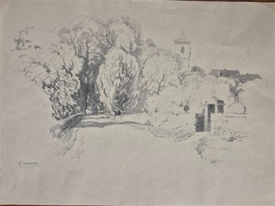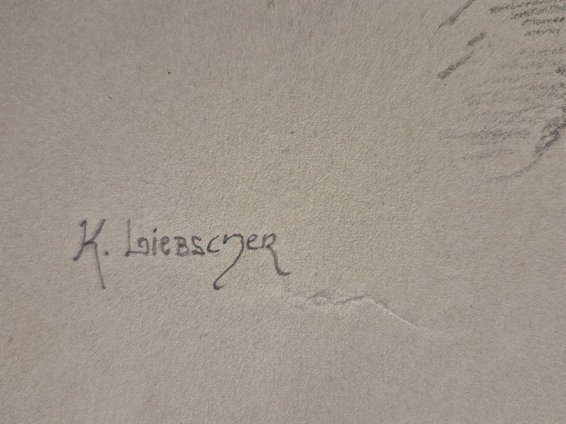 Půvabná kresba tužkou od předního českého malíře, pražského malíře Karla Liebschera (1851-1906), bratra neméně slavného malíře Adolfa Liebschera. Karel proslul jako kreslíř - zajímaly jej zvláště české památky (hrady, zámky, tvrze, chrámy) a architektura obecně. I nabízení kresba s jeho nejčastější tematikou koresponduje. Má rozměr 28 x 38,5 cm. Volný list, nerámováno.