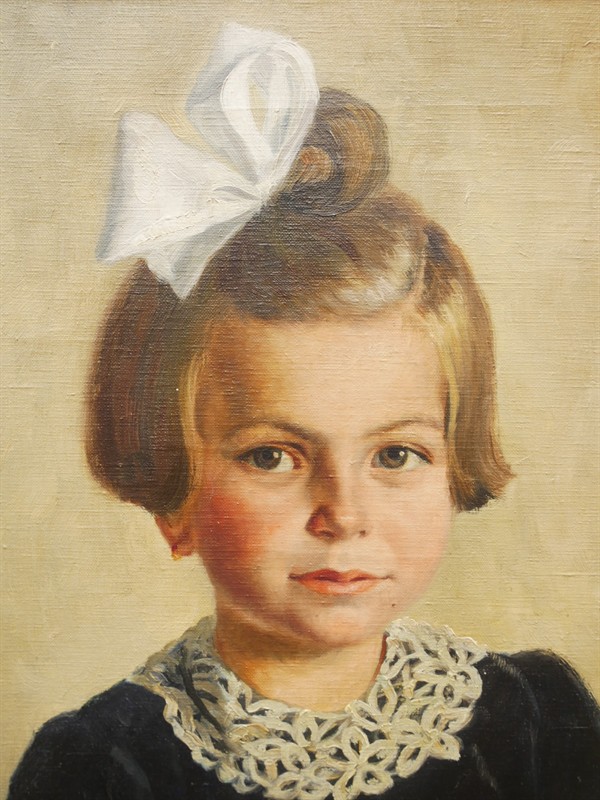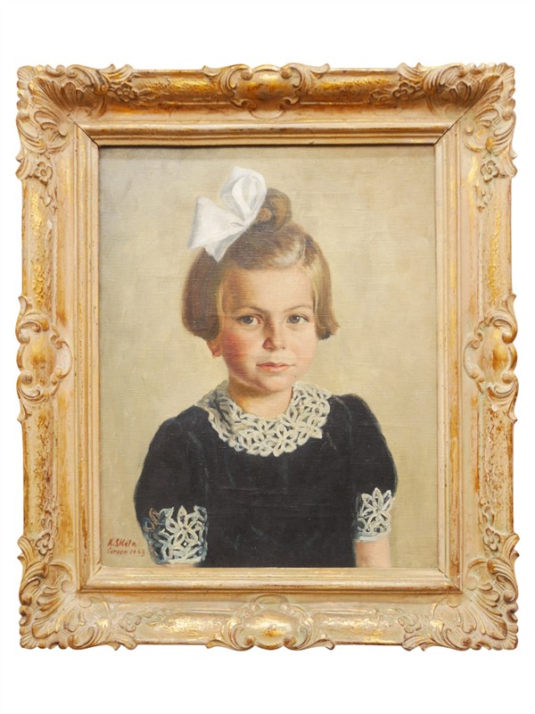 Olej na plátně zachycuje portrét děvčátka s mašlí. Signováno vlevo dole K. Skála roku 1943. Rozměry s rámem jsou 55,5 x 65 cm. Bez rámu 38,5 x 48 cm.
