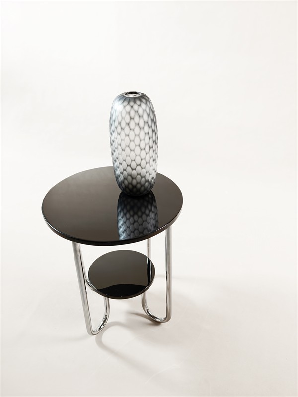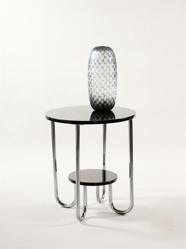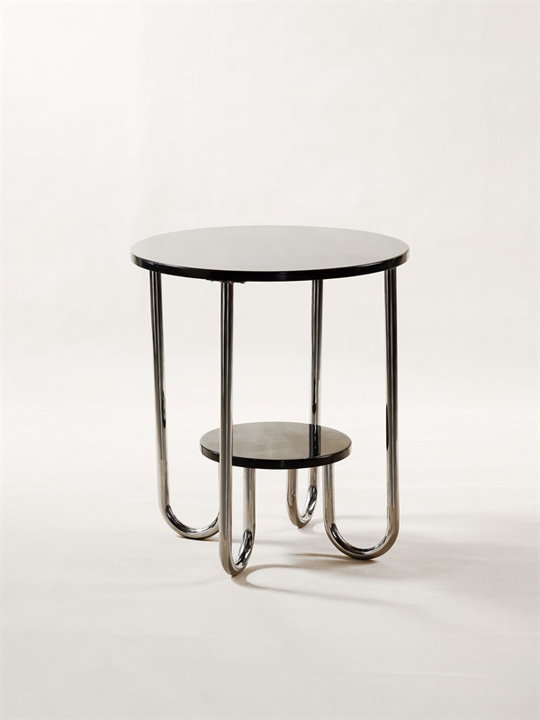 KONFERENČNÍ STOLEK KONFERENČNÍ STOLEK Datování-od 30.let 20 století Výrobce-fa. Gottwald Materiál-trubkové chromované nohy, překližkové police Rozměry-v62. š55. Stav-restaurováno Poznámka-katalogový TOP elegantní model Dopravu zajistíme dle dohody.