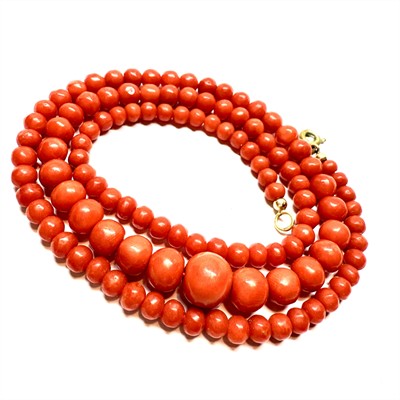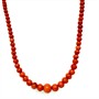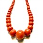 Elegantní korálový náhrdelník ze sytě oranžovočervených korálů. Šperk tvoří 112 mořských korálů, stupňovitě se zvětšujících směrem ke středu - průměr 4,5 - 9,7 mm. Délka náhrdelníku 53 cm. Zapínání obecný kov. Vysoká kvalita korálu, perfektní stav.