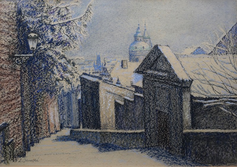 Pastel na papíře 60 x 42 cm, paspartováno a rámováno pod sklem. Signatura vlevo dole. Vzadu štítek s popiskou.