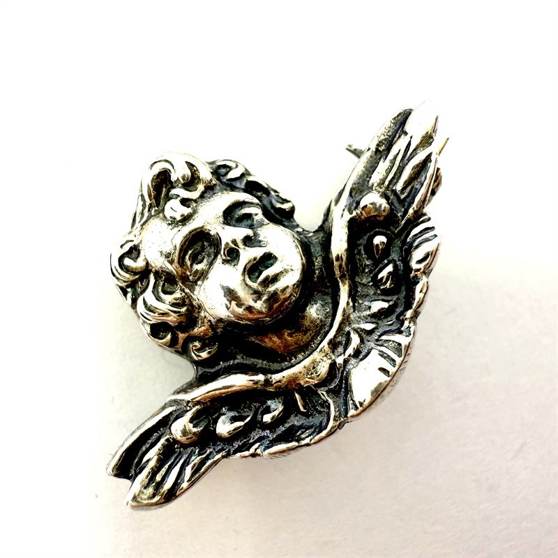 Miniaturní stříbrná brož - anděl