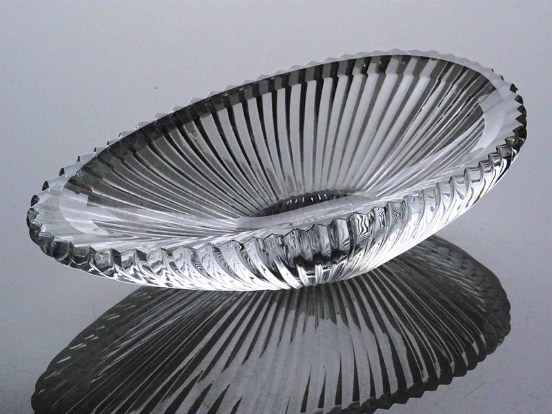 broušená křišťálová miska z poděbradských skláren, 60. léta, publikováno v časopise Šklář a keramik z roku 1962, délka 21 cm