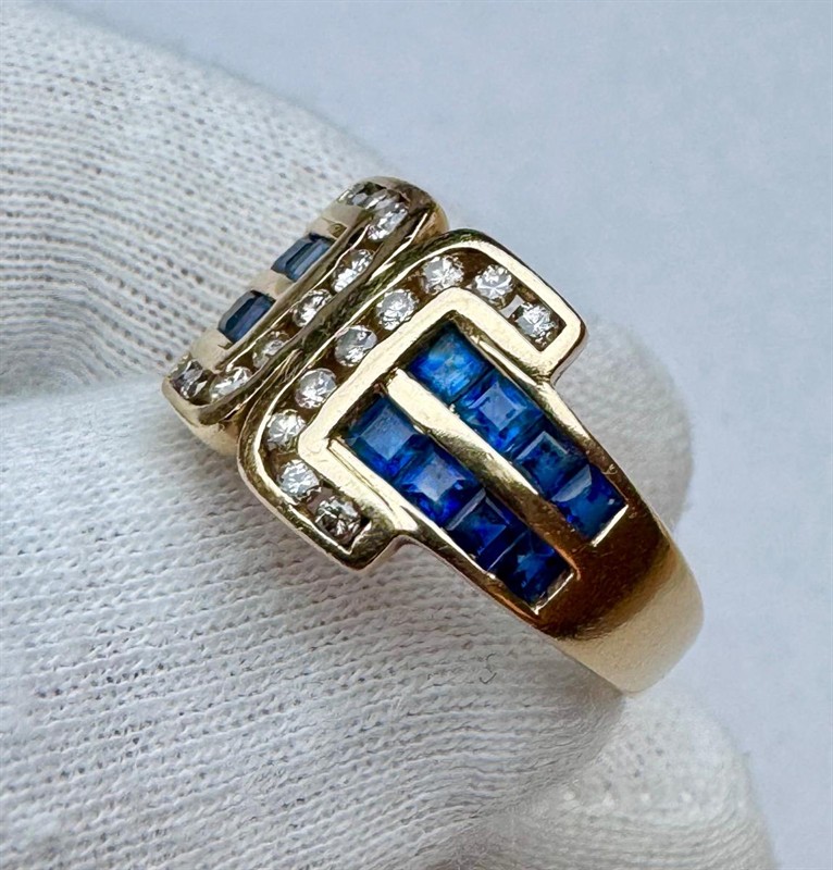 č. 181 303 NÁDHERNÝ 14K ZLATÝ PRSTEN SE SAFÍRY A DIAMANTY - BRILIANTY
