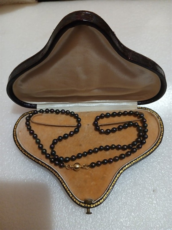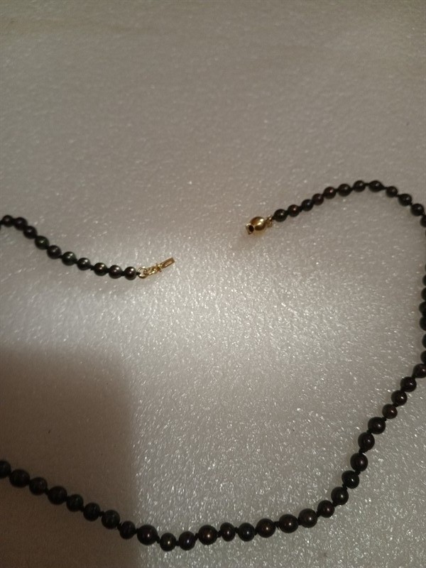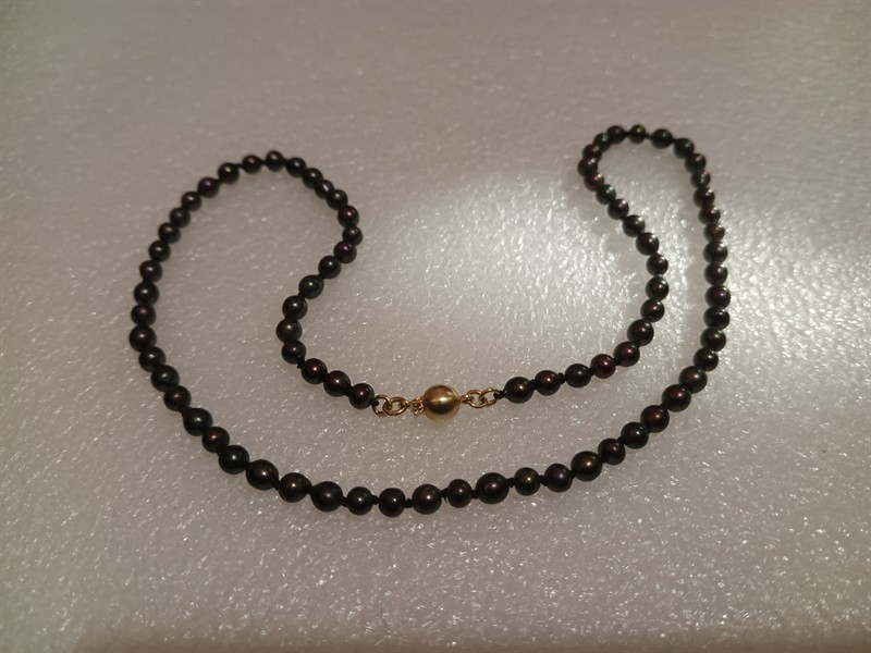 Náhrdelník z tahitských perel které jsou pečlivě uzlíkovány . Uzávěr ze zlata ryzosti 585/1000 . Délka náhrdelníku je 42 cm .