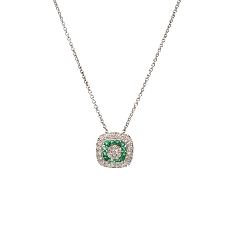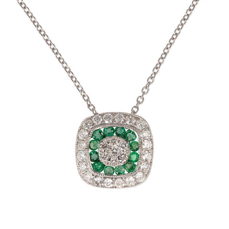 Náhrdelník z bílého zlata s diamanty a smaragdy