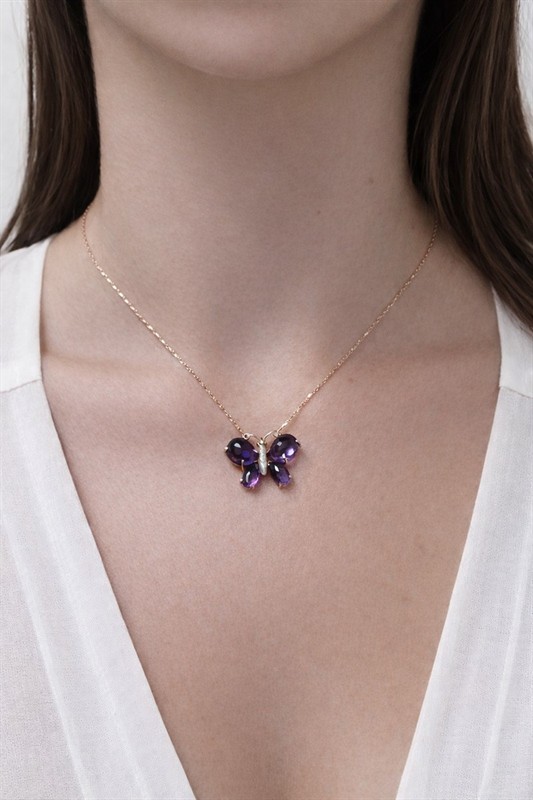 Náhrdelník ze žlutého zlata s přírodními ametysty