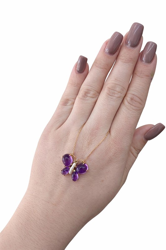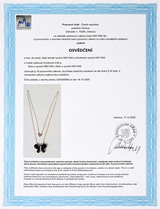 Materiál: žlutý zlatý řetízek o ryzosti 585/1000 s přívěskem o ryzosti 450/1000 Hmotnost: 4,60 g Rozměry: délka 43,5 cm, šířka 2,3×1,7 cm Drahokamy: 4 ks přírodních ametystů Stav: výborný Doklady: osvědčení Puncovního úřadu České republiky Pravost drahokamů byla ověřena gemologickou laboratoří. Pro vaše maximální pohodlí nabízíme kompletní zlatnický servis: úpravy velikosti, odborné opravy, rhodiování, výměny kamenů, profesionální čištění, leštění i znalecké odhady. Vše přizpůsobíme vašim přáním.