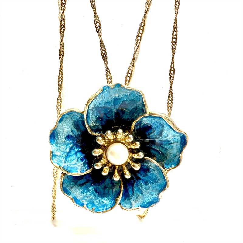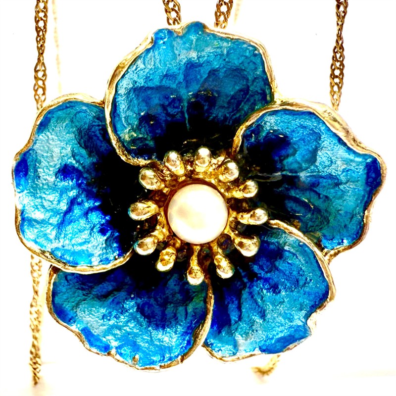 č. 179 674 Norská stříbrná brož / závěs - květ se smalty a perlou