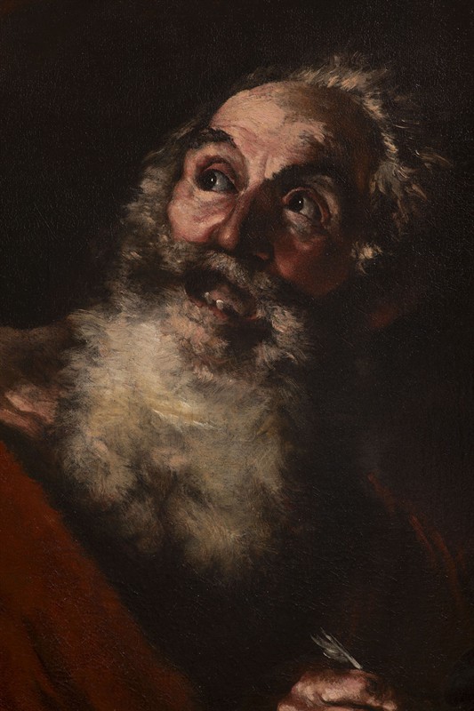 Olej na plátně, 77 x 64 cm (s barokním rámem 96 x 83 cm), obraz odborně vyčistěn a konzervován ve Vídni. Dílo posoudil Prof.Riccardo Lattuada z neapolské univerzity a jednoznačně připsal tomuto malíři neapolské školy. Tvořil v letech 1644 až 1651 v Neapoli a Palermu a toto je jeden z jeho nejlepších obrazů. Zemřel na Sicílii v Palermu, ale rok úmrtí není spolehlivě doložen, uvádí se rok 1651, ale někde až rok 1690.  Obraz prošel aukcemi v Londýně a Vídni. K obrazu bylo vystaveno Osvědčení k trvalému vývozu předmětu kulturní hodnoty. Literatura: E. Ghetti, D. Benati (eds.), Massimo Turchi: La collezione, Turín 2019, str. 184, č. 103, ilustrace str. 185 (připsáno Giovanni Battistovi Langettimu)