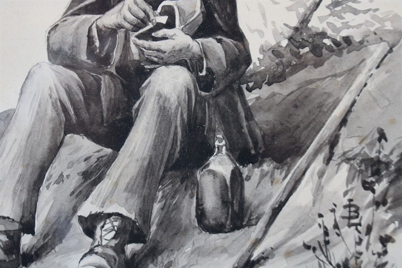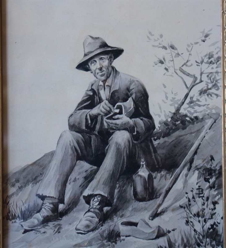Odpočinek poutníka,Kvaš na kartone,Signovano (viz foto) Rozmery malba:25 x 18 cm.plus ram
