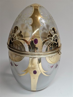 Ohromne Sklenene Secesni Vajicko Doza Cechy 1900