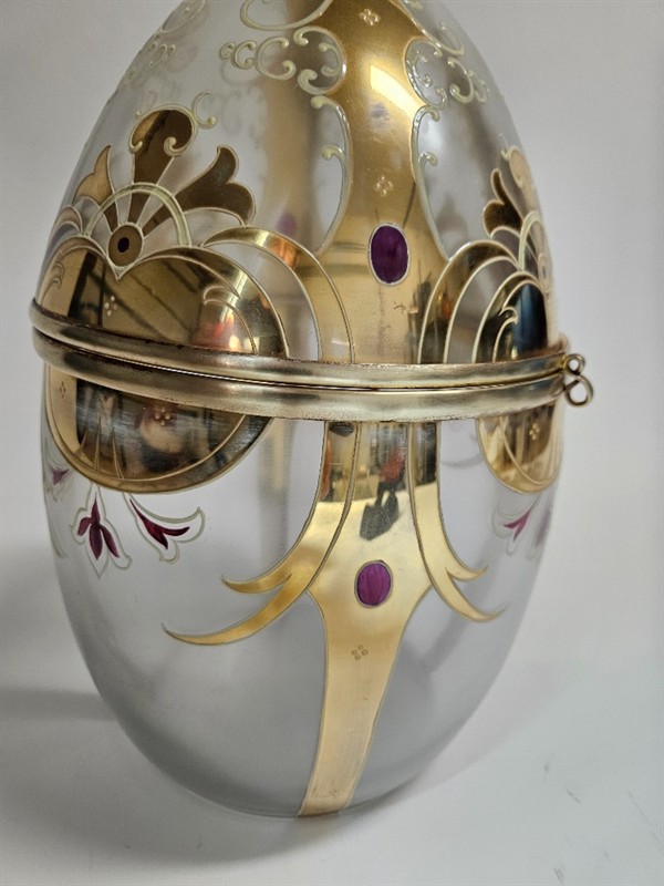 Secesni sklenene vajicko Cechy 1900 .Rozmery 35cm vyska 20cm sirka , v dobrem stavu.