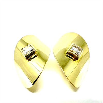 Elegantní, zlaté náušnice - efektně prohnuté ovály. Náušnice byly vyrobeny ze zlata ryzosti 333/1000, o celkové váze 2,48 g. Náušnice jsou osazeny transparentním, světlým kamenem s vysokou brilancí. Zapínání na puzetu. Náušnice byly profesionálně vyčištěné zlatníkem, jsou slušivé, příjemně nositelné a v perfektním stavu.