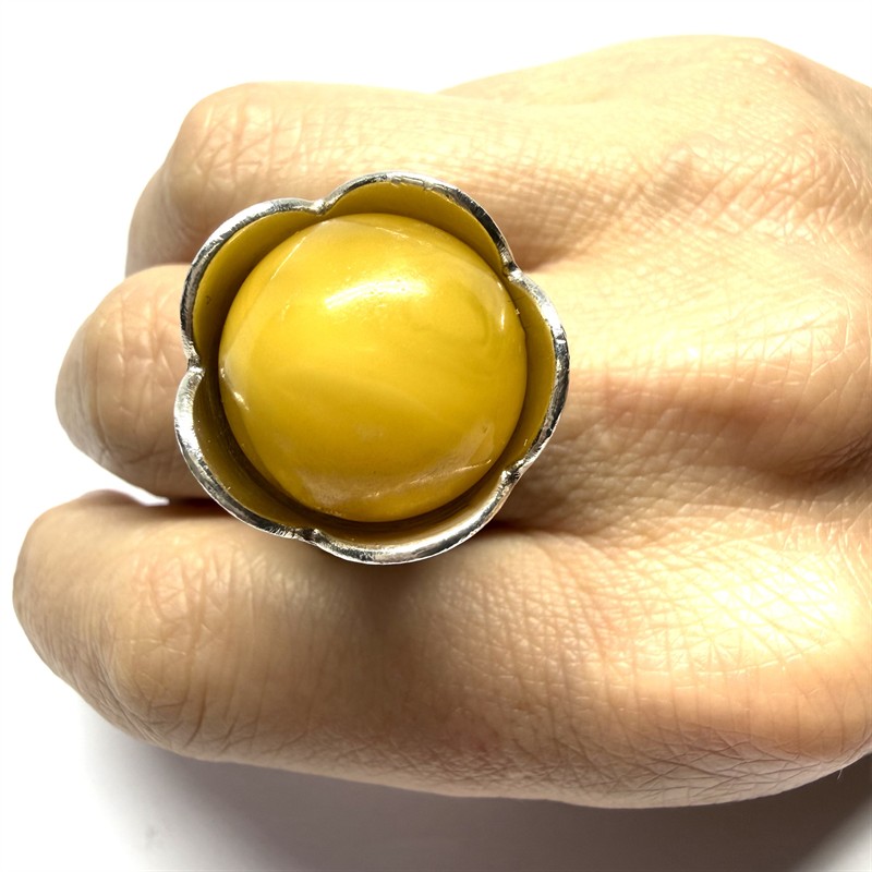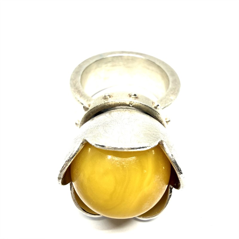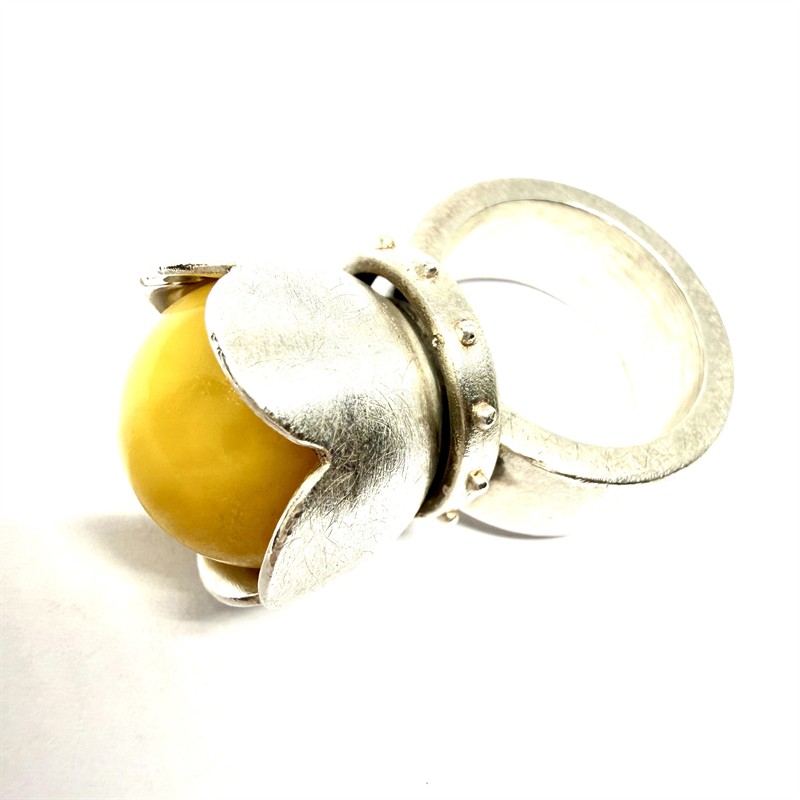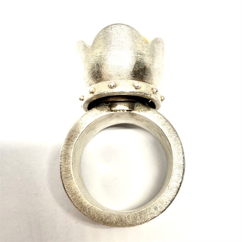 Originální, grandiózní prsten z masivního stříbra. Ateliérový šperk byl zhotoven ze stříbra sterlingové ryzosti (925/1000). Váha 31,50 g. Velikost 60. Perfektní stav.