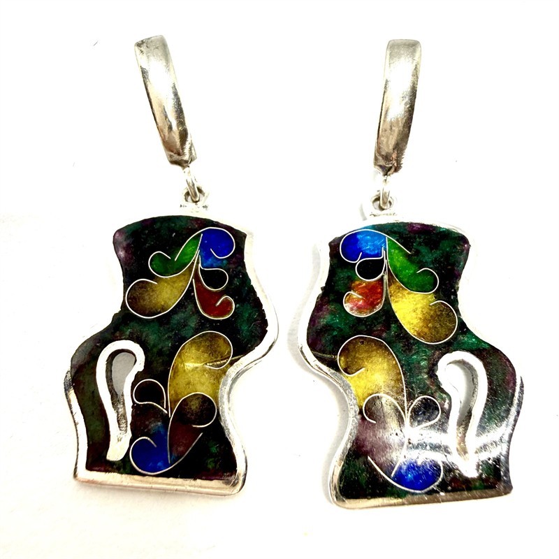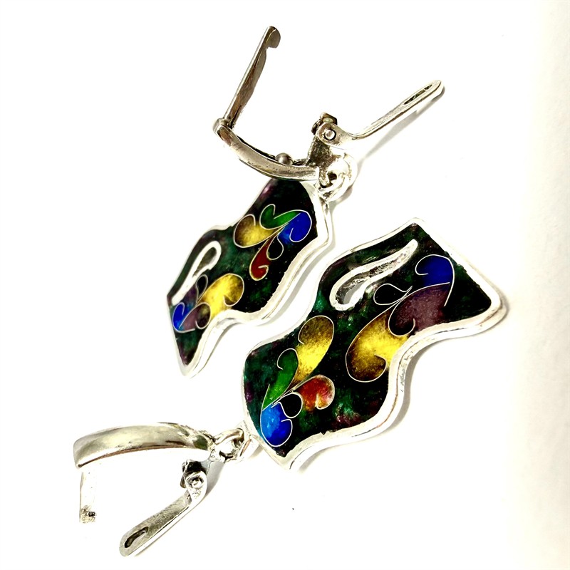 Originální stříbrné náušnice zdobené smalty