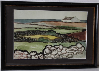 Oto Janeček (1919 - 1996) - Ruibeion 1946 Signováno viz foto. Malíř, grafik a profesor v Praze. Studoval na umělecko průmyslové škole v Praze u prof. Kysely a Nováka (1941 - 1942), poté na vysoké škole architektury a pozemního stavitelství u prof. Blažíčka a C. Boudy (1937 - 1939). Maluje podobizny, zátiší a figurální kompozice. Sklon ke grotesce a karikatuře. Vliv kubismu.  Akvarel na silném papíru. Rozměry: 27 x 41 cm malba, 38 x 55 cm rám.