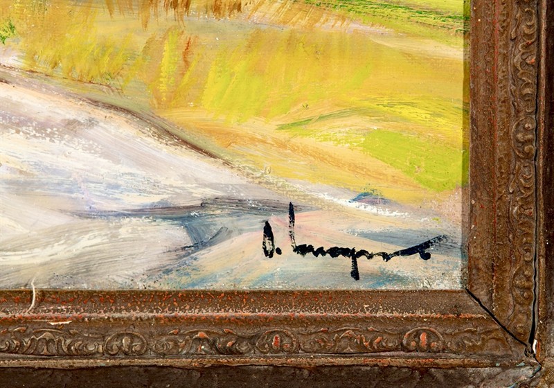 Zajímavý olej na plátně od německyhovořícího autora z Olomouce. Rozměr malby 60,5 x 75,5 cm Otto Langer (1889-1941) studoval na K.k. Kunstgewerbeschule des k.k. Österreichischen Museums für Kunst und Industrie (1867-1919), Vídeň (Wien), byl členem Metznerbundu. Vystavoval například na výstavě soudobé kultury v Brně v roce 1928.